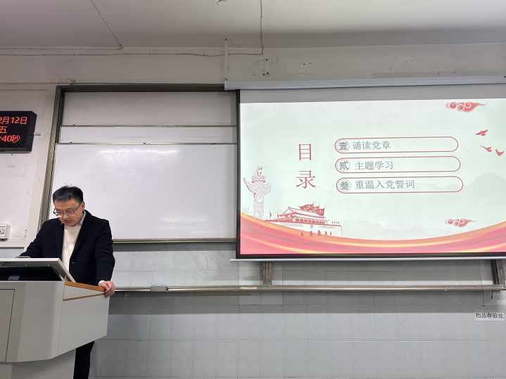 会议室开展主题党日。青年委员胡迟主持,带领党员学习湖北省第十二届十一次全会公报及中央政治局集体学习会议精神,强调要筑牢思想根基、传播正能量。党员结合专业踊跃发言,展现理论素养提升的积极面貌。