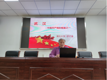 田子渝教授从武汉是马克思主义早期传播的第三重镇、武汉有中国共产党的第二个早期组织、武汉掀起了中国第一次工人运动的顶峰等3个方面阐述了武汉在党的历史上的重要地位。他介绍了陈独秀、李大钊、李汉俊、董必武、蔡和森等一批早期革命先辈的事迹,系统阐述了《劳动政府与中国》、《马克思资本论入门》和《阶级争斗》等3本书在党的早期历史作用和地位。田子渝教授指出,1920年秋,在武汉成立的早期党组织是中国共产党成立的重要基石,在党的历史上有着至关重要的地位。他强调,致学要坚持唯物史观,高举唯物主义的旗帜,以史为证;武汉作为中国共产党的摇篮之一,是湖北和武汉的光荣,大家要把这份光荣传承下去。