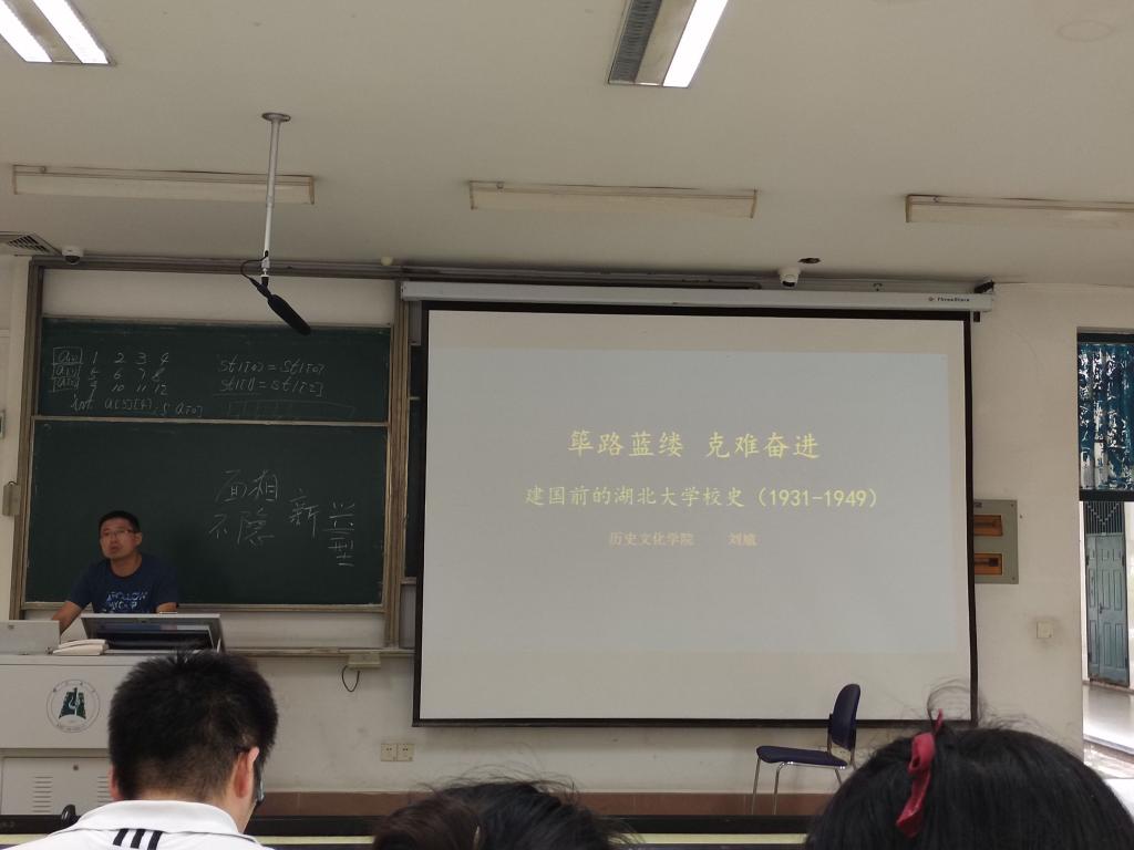 17、18、19级本科生讲授了题为“筚路蓝缕、克难奋进——湖北大学建国前的历史”的形势政策课。
