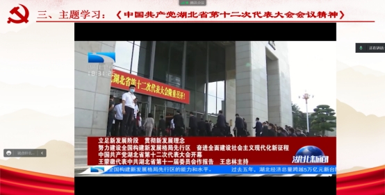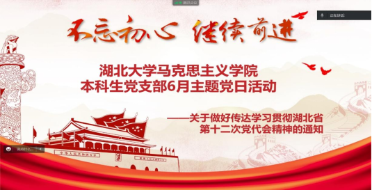 本科生党支部开展了题为“学习贯彻湖北省第十二次党代会精神”的线上主题党日活动。本次会议由宣传委员刘欣悦主持。