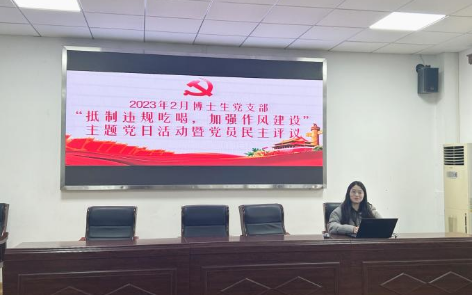 410会议室开展主题为“抵制违规吃喝,加强作风建设”党日活动暨2022年度基层党组织组织生活会,并开展党员民主评议活动。支部全体党员参加会议,会议由党支部书记曾沁文主持。