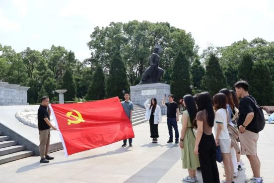活动途中,博士生党支部为孙妙、李家胤两位同志举行预备党员转正大会。转正结束后,由两位新转正同志领誓,支部党员在黄麻起义和鄂豫皖苏区革命烈士纪念碑前重温入党誓词。