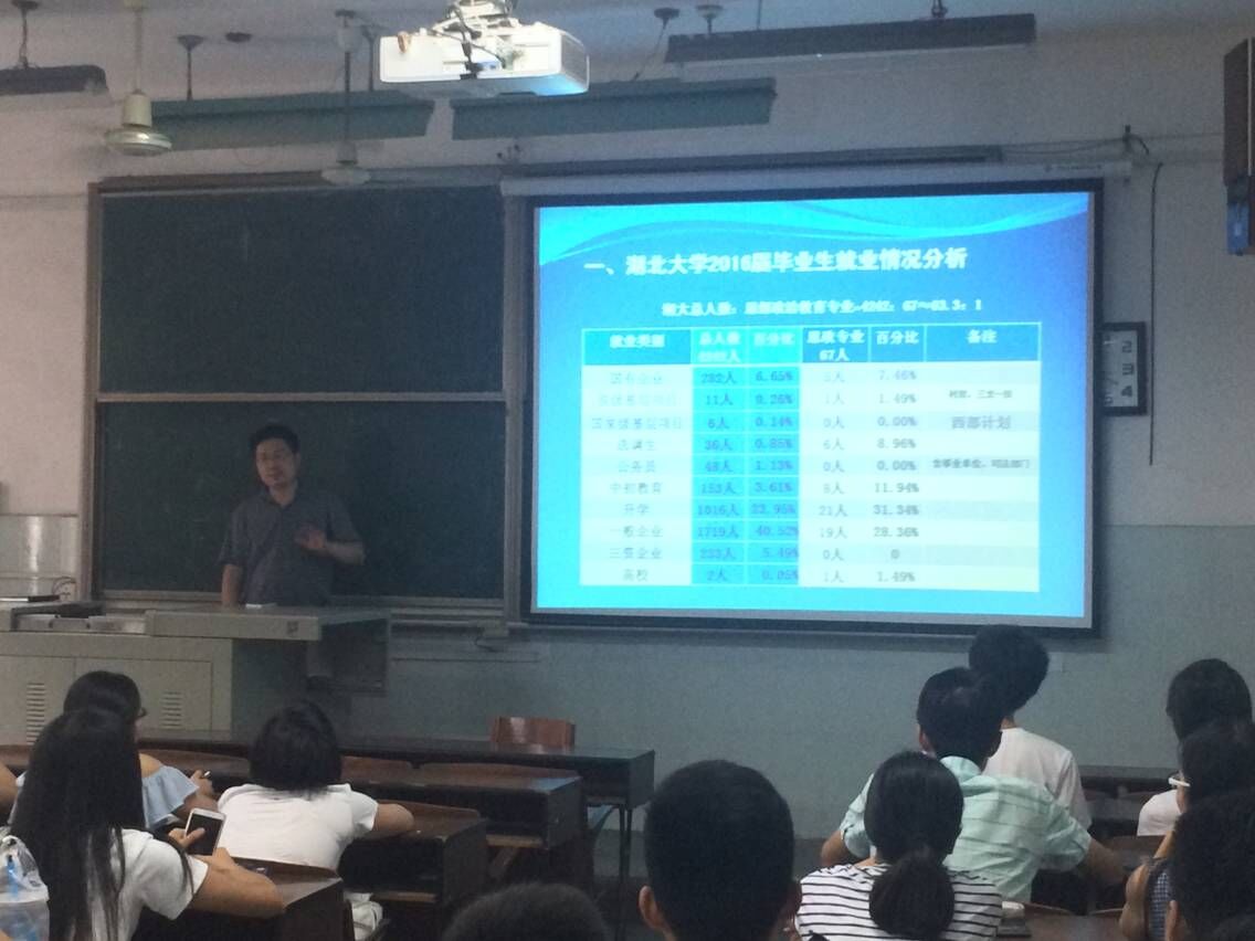 据悉,王雄书记对湖北大学2016届毕业生和思想政治教育专业2016届毕业生的就业情况进行综合分析和比较后,为思想政治教育专业2017届毕业生未来的就业和发展方向提出了专业性的意见和建议。王雄书记在会上谈到:“从思想政治教育专业的学生历年来的就业和发展情况看,考研、考公务员和选调生、去国企或一般的企业工作以及从事中初教育不失为本专业学生较好的选择。”