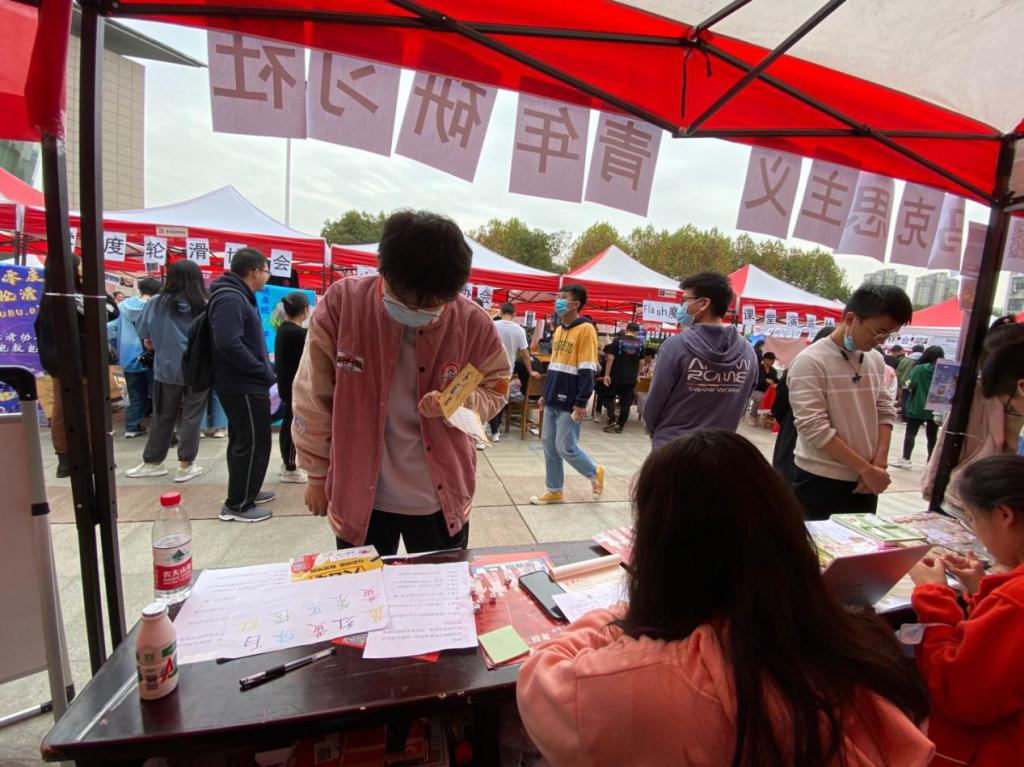 2020年11月4日至5日,湖北大学学生社团在图书馆门前求索广场开展了以“社彩纷呈,联梦琴园”为主题的百团大战招新活动。学校社团通过多种方式纳新,展现了丰富多彩的社团文化。