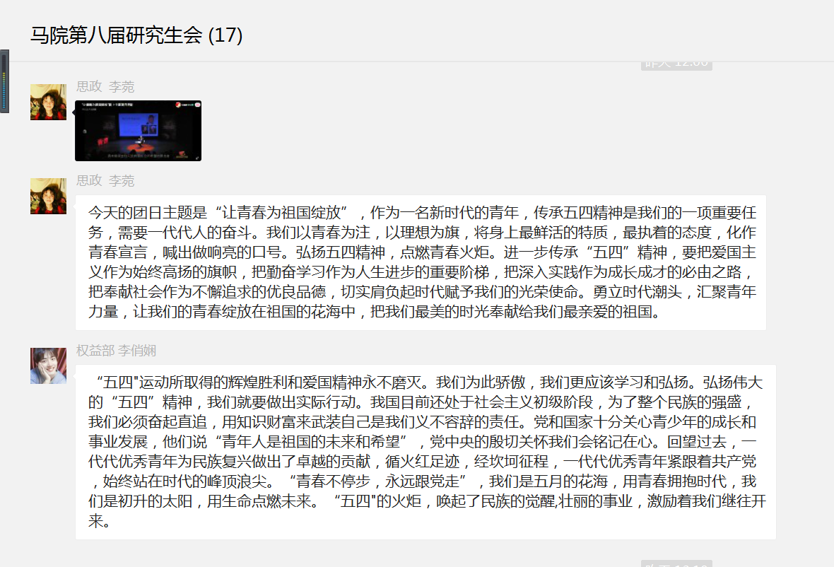 我院研究生会全体成员积极响应,全程观看线上主题学习活动,并积极分享自己的心得体会。