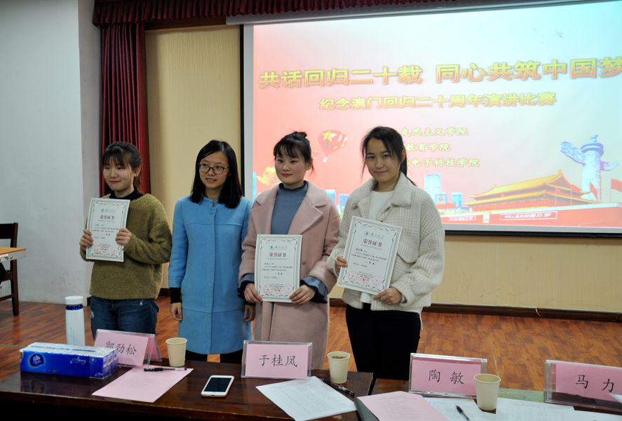 各组选手紧扣澳门回归的主题,结合各自专业从澳门的爱国主义教育、道路巡检科技以及澳门历史等视角展开演讲。在演讲中,选手们带领在场师生回顾了澳门的苦难史和回归至今的发展复兴史。其中,鲜明的主题有《点赞澳门,莲城一家》、《澳门,别来无恙》和《回顾历史,展望未来》等。来自麻将明星3缺1