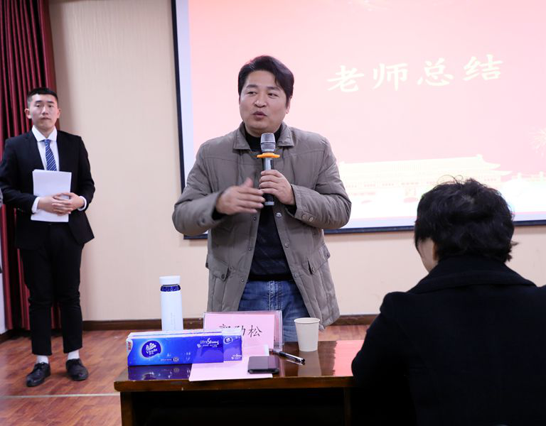 郭劲松老师在总结中指出,澳门如今的发展成就是在党的领导下取得的,这说明只有在祖国大家庭里、在党的领导下才能走向繁荣发展之路。就本场活动来说,郭老师特别称赞了中场互动环节中同学们的表现。他认为,唱经典红色歌曲可以使人更好地抒发情感、控制节奏,语言表达也会更有感情和艺术。他希望同学们多参加这类活动,提升演讲技能。