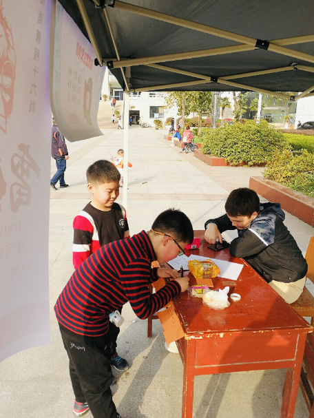 除了通过游戏向大家传递为人民服务的雷锋精神,志愿者也通过问答环节向大家讲述雷锋同志的生平事迹。其中还有两位小朋友庄严地在纸上写下了自己在雷锋月想做的“公益事”。
