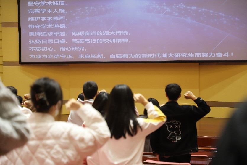 校研究生会主席文炎做开幕汇报。在汇报中,他对往届学术科技节所取得的成果进行了回顾并对即将到来的第五届学术科技节提出展望。随后,他对本届学术科技节的几个阶段做出简要介绍,其中重点向参会人员就活动阶段三个板块进行重点介绍,并对参加本次活动的兄弟高校表达诚挚的谢意。开幕式在学生宣誓中圆满落下帷幕。