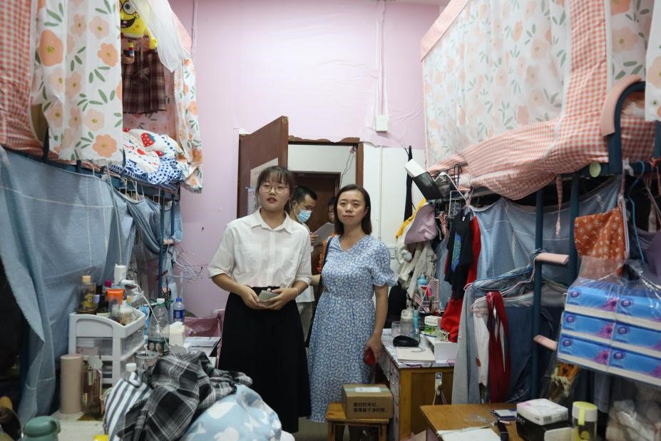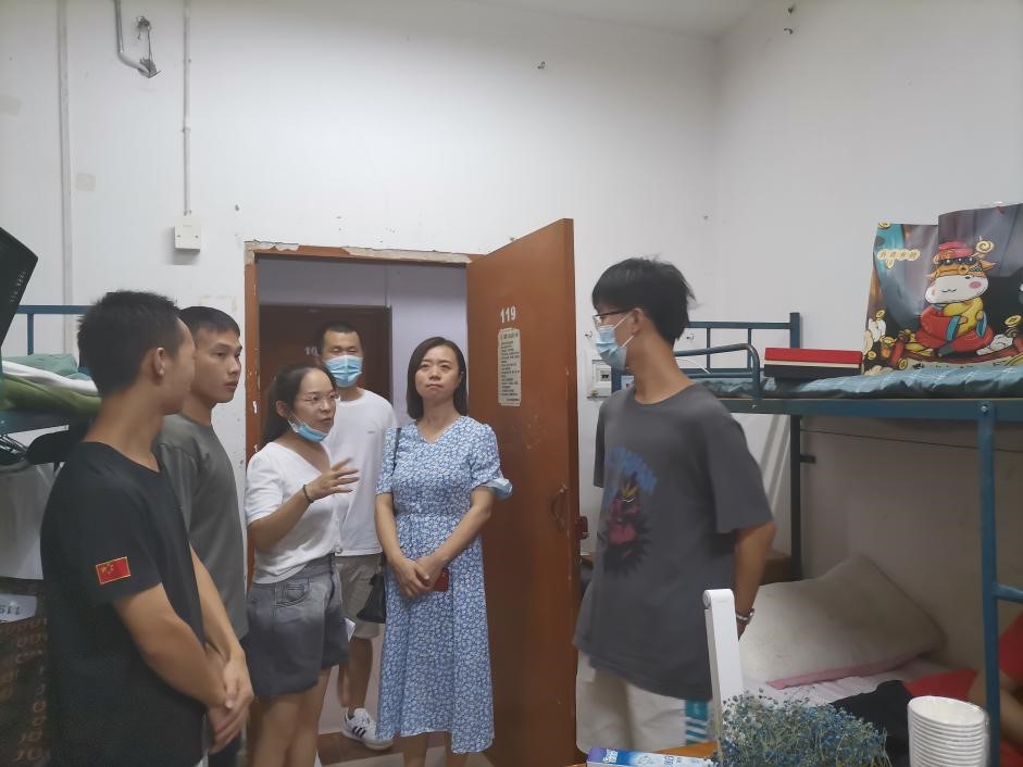 党委副书记晏妮、研究生秘书郭艳妮、辅导员邹浩以及20级班主任程亚勤一行参加查寝活动。