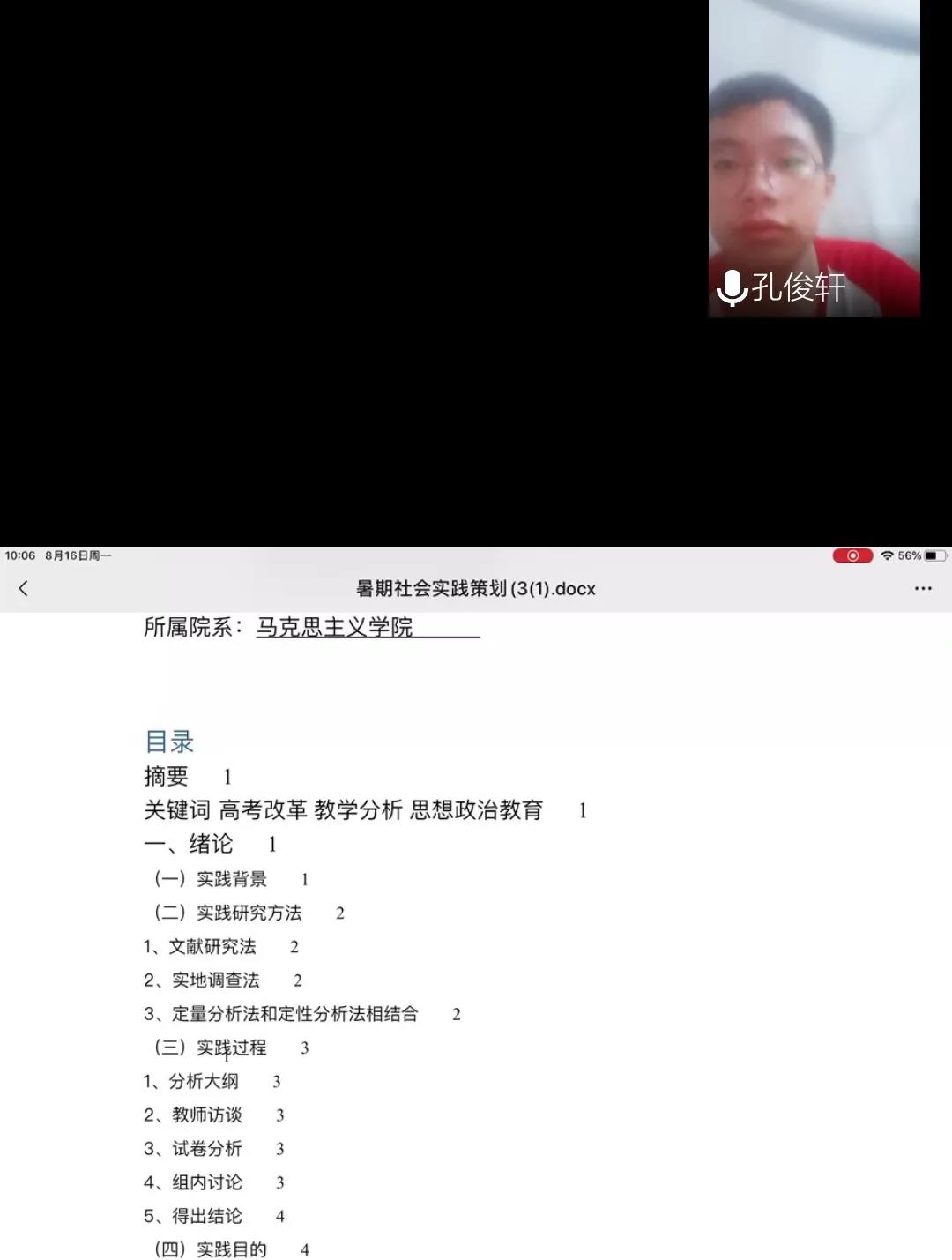 经过此次实践活动,成员对于新高考有了深入的了解,逐步明确了高中政治教育发展走向,对于日后的实习、工作具有指导意义。截至日前,线上工作仍在进行,并将于近期形成总结性报告。
