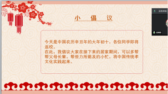 通知要求,于2021年2月21日晚8时举行了——“传承中华传统美德,感恩敬老爱老” 思政主题班会。