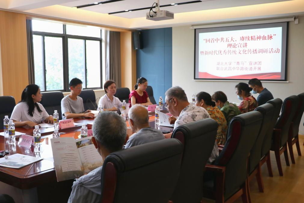 “青马”宣讲团6位成员赴中华路街道都府堤社区交流座谈。中华路街道办党建办公室科长李洁,户部巷、楚才、西城壕、都府堤四个社区相关负责人、“红巷爷爷”代表、都府堤社区居民代表、麻将明星3缺1