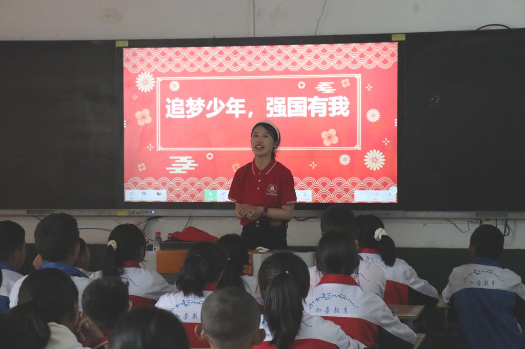 思政课堂润心灵,砥砺深耕护成长。团队成员夏琼为加查县中学七年级一班的同学上了一堂别开生面的思政课。学生整齐地坐着,观看纪录片《新青年》《黄文秀》片段,个个震撼人心的画面、声声铿锵有力的旁白解说令学生们深受触动,甚至留下感动的泪水。