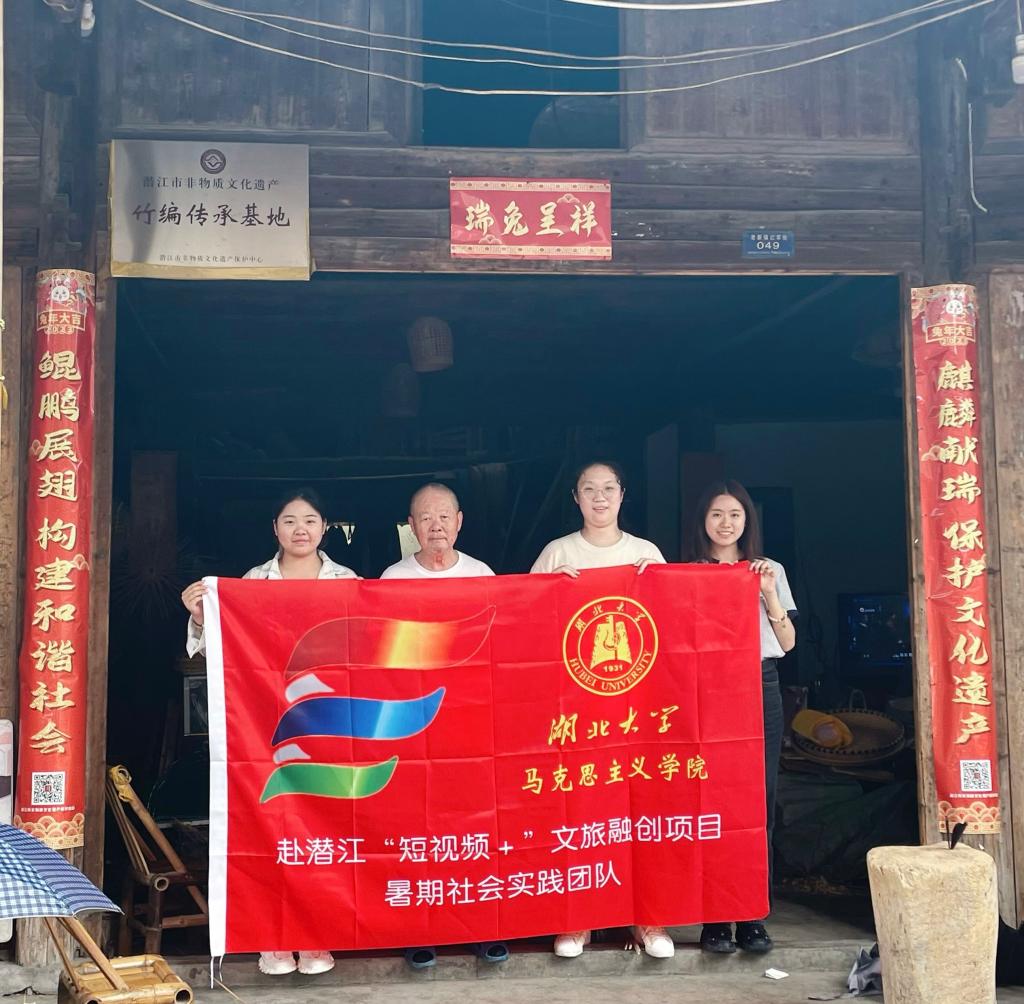 2021级本科生齐蓝儿、郑瑶瑶、赵倩、桂心乙、刘雪莹、肖雨琳六人组成的暑期社会实践团队,以“湖北省潜江市‘短视频+’文旅融创促进乡村振兴”为主题,前往潜江市老新镇村、莫岭村展开五天实地调查。在此期间调研团六人运用走访学习、实地了解、亲身体验的方式,掌握了当地非遗传承和乡村振兴各个方面建设的基本情况,并运用短视频的形式,探索新媒体在非遗和乡村振兴中的实际作用,探寻利用新的切实途径。