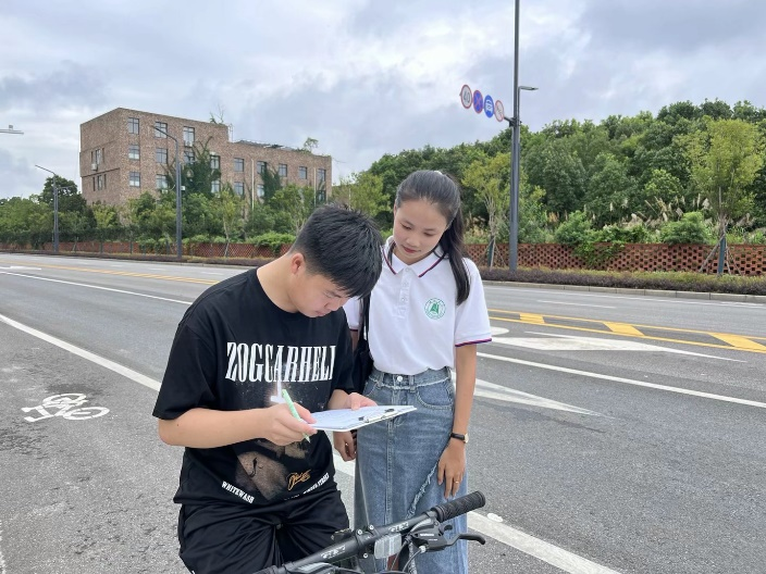 (图为实践团队在社区进行发放调查问卷 通讯员 江春蓉 供图)
