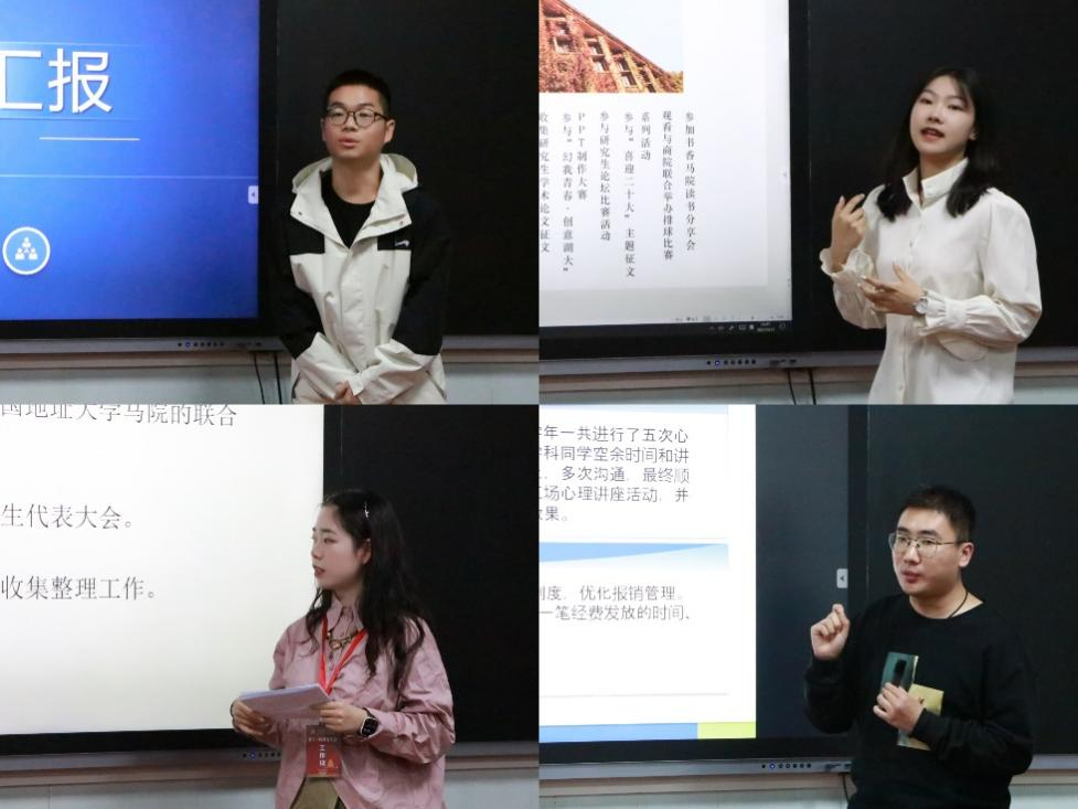 党委副书记晏妮、辅导员冷自衍,研会主席团出席并担任评审嘉宾。研究生会12名成员以线上线下相结合的方式参与评选,研究生会主席王琴主持此次活动。
