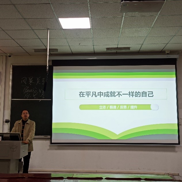讲座伊始,杨勇老师跟同学们畅谈大学的经历,拉近师生距离。随后,杨勇老师从价值追求,阳光心态;珍惜平台,舍得折腾;习惯反思,萃取经验;走出舒适,一事精致四个方面讲述了作为一名教师如何在平凡中成就不一样的自己。