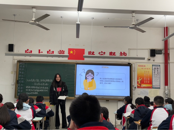 实习小组房睿同学也提道:“在管理班级的过程中,有些小孩很调皮,但我也感受到了初中生的活力,与咱们大学生形成了鲜明的对比,我也很喜欢和这些小孩儿一起,感受青春的力量!”