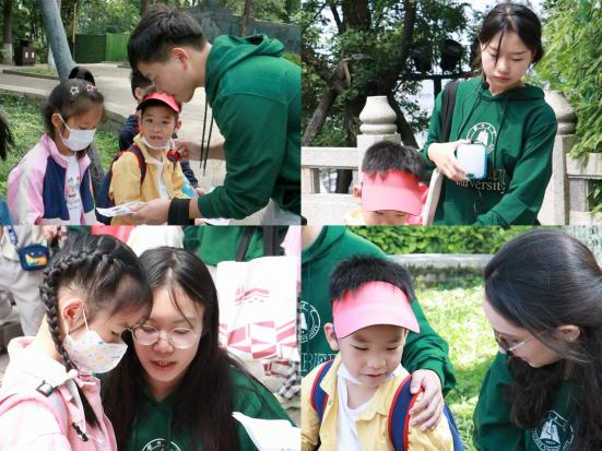 此次传统文化寻迹现场实践教学活动选取黄鹤楼景区6个特色建筑,绘制成“探寻武昌古城1800”宝藏地图,以大学生和小学生一一结对的形式,以寻宝打卡的方式,引导小学生们发现黄鹤楼的传统文化之美、建筑文化之美。