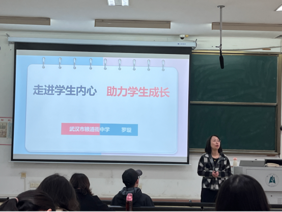 罗璇老师首先用生动有趣的短视频形式带领同学们走进初中段的学生,分析了初中生的心理特点,初中生与家长、老师和同学相处的特点以及班主任与学生之间的关系。罗璇老师还通过提出具体的实践问题与同学们进行探讨,围绕“走进学生内心,助力学生成长”的核心议题与同学们展开交流。