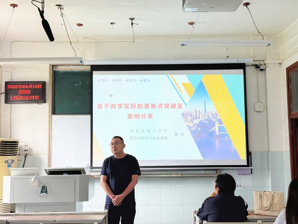 学科教学(思政)双师课堂第九期顺利开展。武汉市教育学会第九届中学政治专业委员会理事、武汉市第六中学学生发展指导中心副主任、高二年级政治备课组长、江岸区优秀青年教师陈杰老师,为 2024 级学科教学(思政)专业全体研究生带来题为《基于教学实际的重难点突破及案例分享》的专题讲座。
