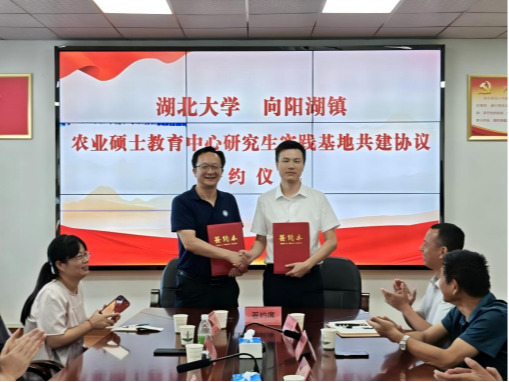 宣讲活动结束后,农业硕士实践基地共建活动在向阳湖镇政府会议室举行。活动中,湖北大学与向阳湖镇人民政府签署了农业硕士研究生实践基地共建协议,该协议标志着校地合作进入了实质性共建新阶段。
