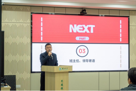 在认真听取师生发言后,吴明新对本次主题班会的组织形式与育人成效给予充分肯定。他结合个人成长经历寄语同学们,要珍惜伟大时代与青春年华,充分利用国家、社会和学校提供的宝贵平台,勇于尝试、敢于探索,在实践锻炼中不断提升解决实际问题的能力。他强调,青年大学生是中华民族伟大复兴征程上的生力军,要坚定“强国有我”的信念,将个人理想追求主动融入国家发展大局。他勉励同学们要厚植爱校荣校情怀,不忘初心、砥砺奋进,努力成长为可堪大任的栋梁之才。