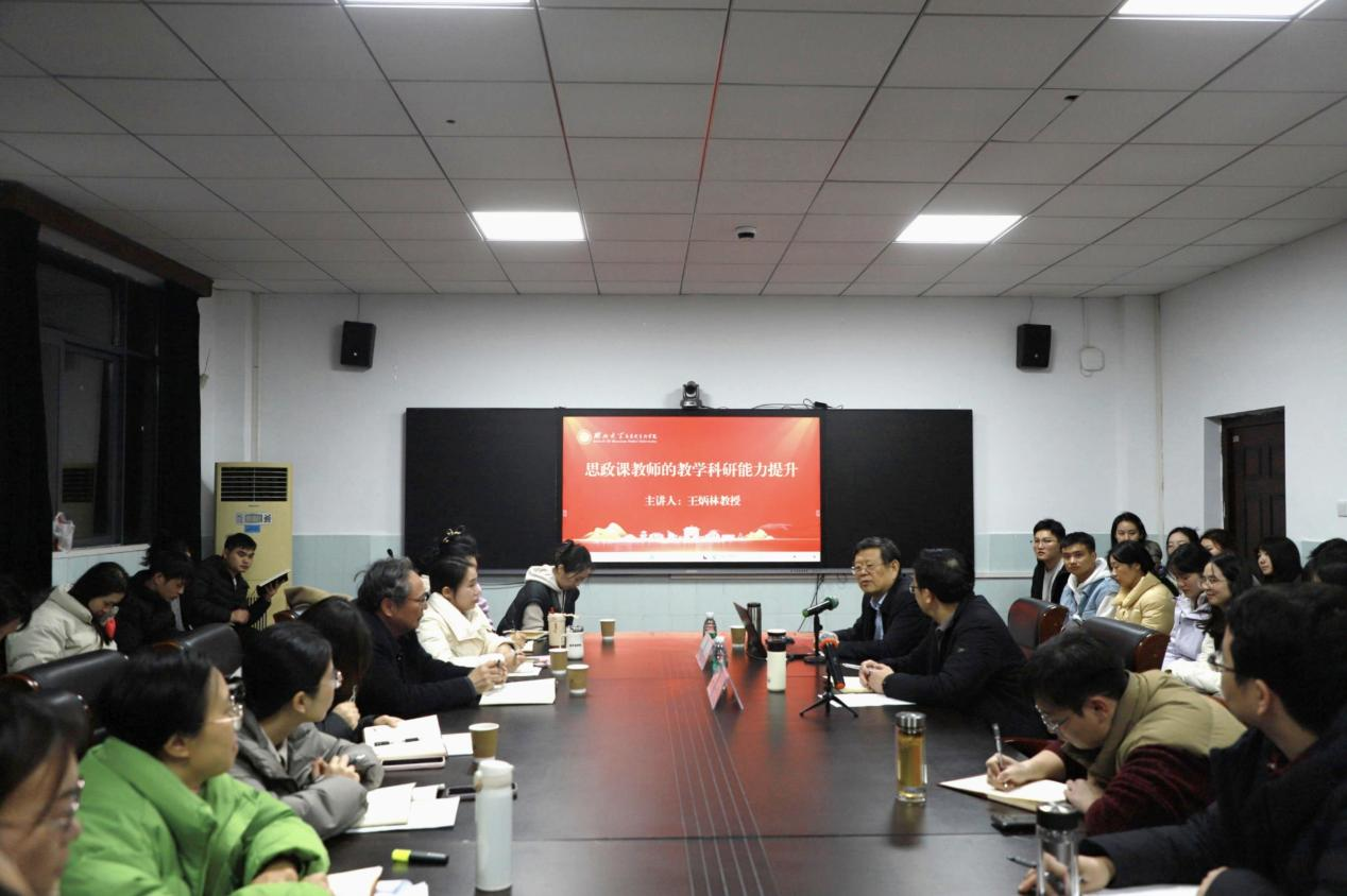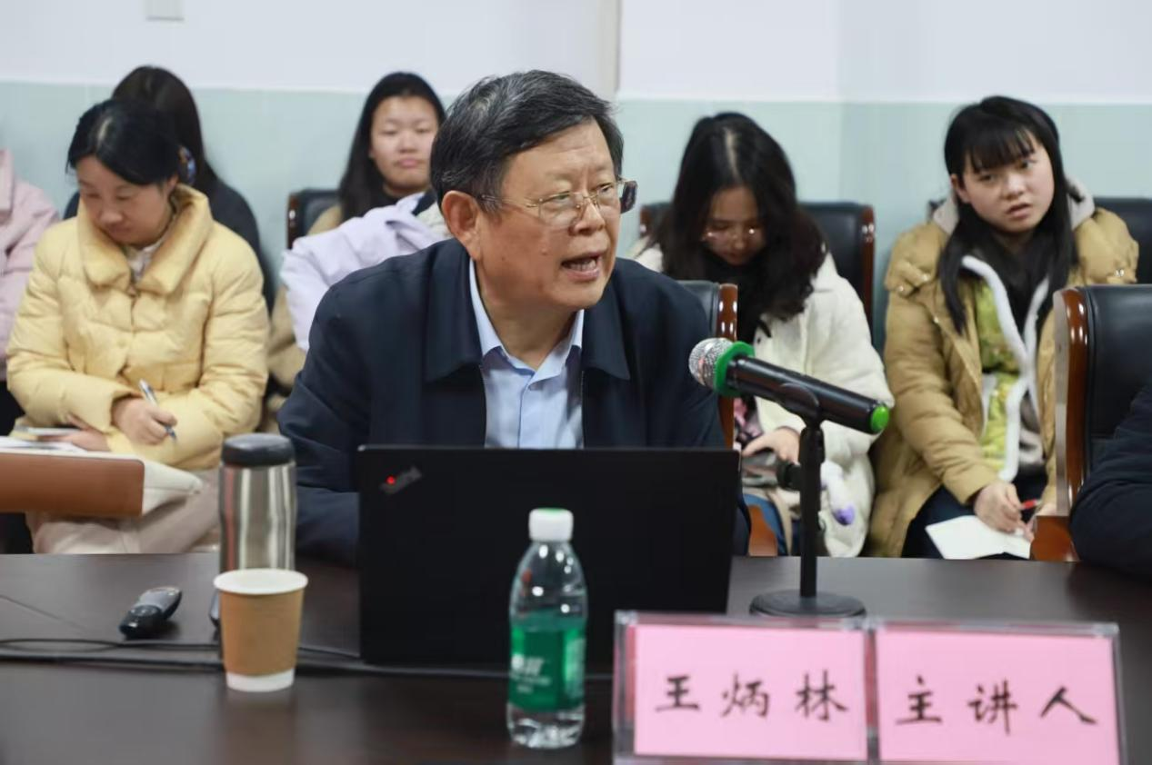 王炳林教授以《思政课教师的教学科研能力提升》为题,围绕教学改革、教学方法优化与科研能力提升,为与会教师和学生带来了一场精彩的学术报告。他指出,在教学改革方面要坚守“变与不变”的辩证逻辑,教学实践上要“作研究、抓重点、讲故事”,强调教师需深耕教学内容、转化教材为教学体系,并以生动叙事提升育人效果;在科研方面,选题要紧扣时代,提升撰写技巧与学术水平。