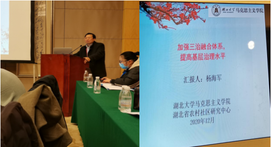 论坛报告阶段,杨海军老师围绕“基层社会治理”主题进行了专题发言,主要报告了深入三治融合体系,提高基层治理效能,发挥德治在基层社会治理中的积极作用。报告受到主持人和点评嘉宾的好评。