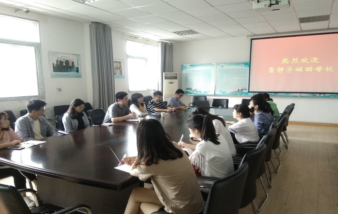 此外,雷静师姐,现任武汉市团市委副书记,作为01级优秀校友代表,在五楼会议室同15级、16级部分同学就考研就业进行了交流。