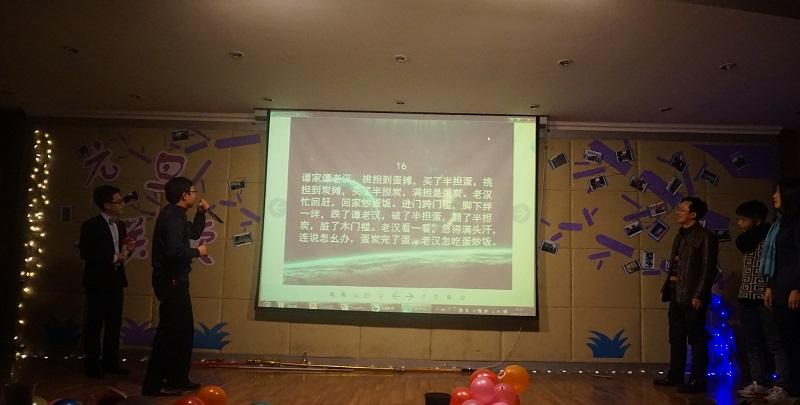 节目中游戏环节更是激动人心,不仅同学们争先上台比赛,老师们也跃跃欲试,让知识竞答、交换名字、抢答猜歌名等游戏热闹非凡,胜利了有奖品,输了则有喝醋、念绕口令的等惩罚,老师们在台上念拗口的绕口令的情形让人记忆犹新,师生同台,更彰显了马院其乐融融的师生氛围。