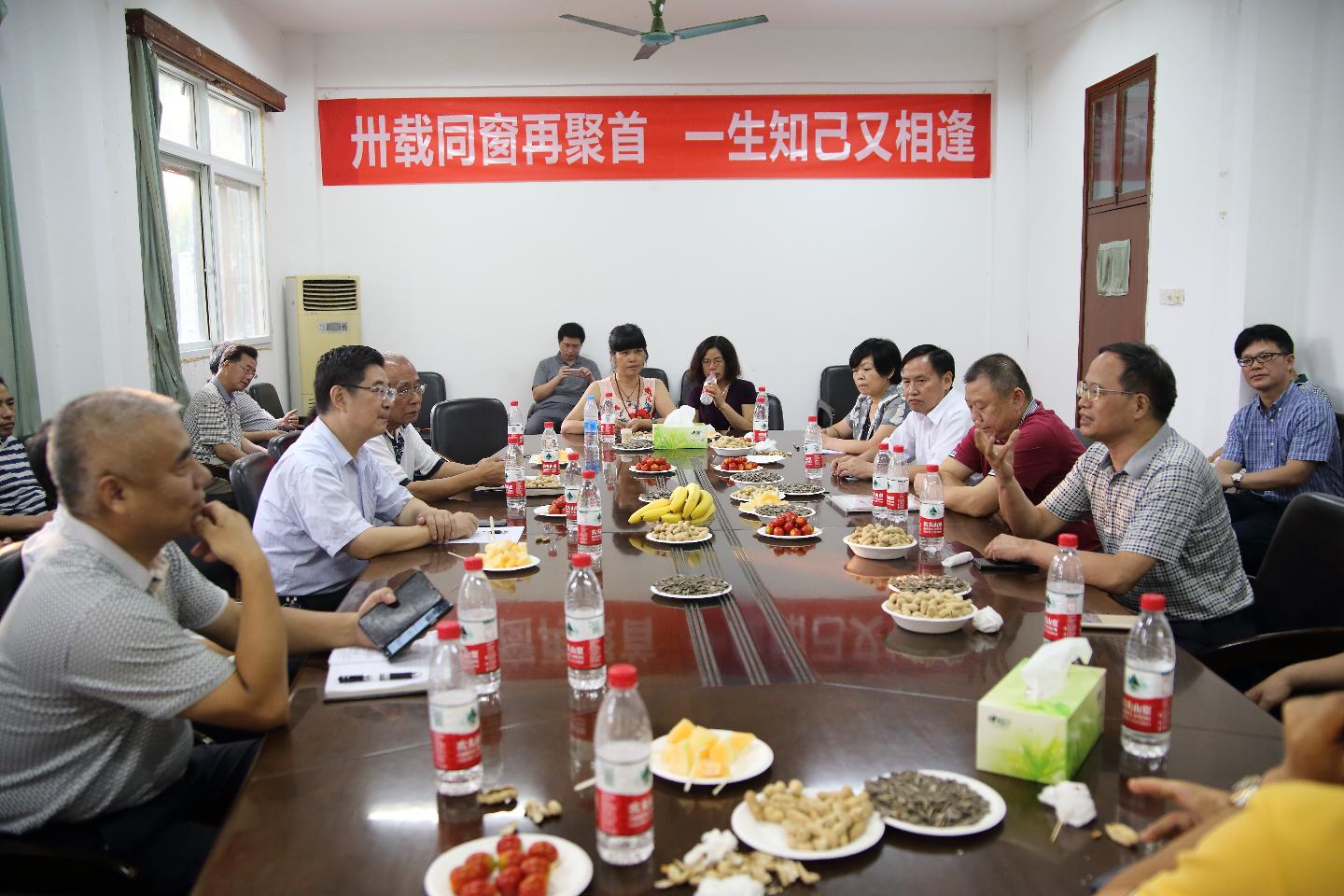 四楼会议室亲切座谈,对校友返校探望母校及恩师表示热烈欢迎。