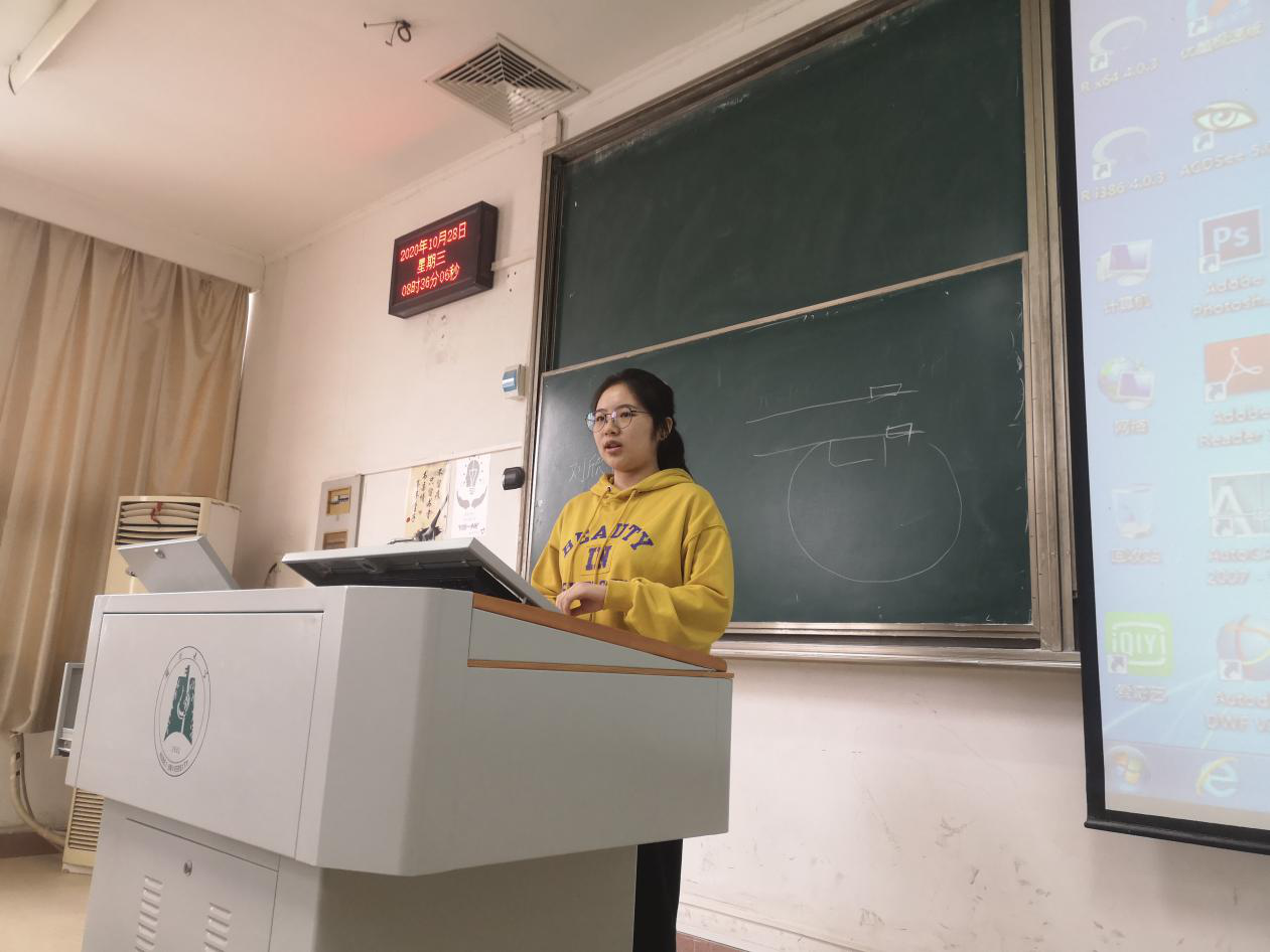 刘兆雯讲述了三个亲身经历的故事,分别是:采访湖北大学社区党支部工作者抗疫期间的工作纪实;妈妈同事郭叔叔作为河北省第一批驰援武汉医务工作者援汉经历;她妈妈作为检验科医师与新冠病毒的生死搏斗。过程中,她几度哽咽,其所讲述的一个个普通人冲在抗疫一线的感人精神也引起了在场同学的共鸣。