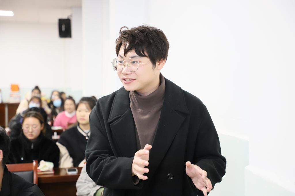 学生积极参与、踊跃发言,举手询问了许多有关思政课教学的问题,周金娥老师热情解答了刘传禹、王潇等同学的问题,周老师凭借丰富的教学经验,解答了大家的困惑,赢得同学们的阵阵掌声。