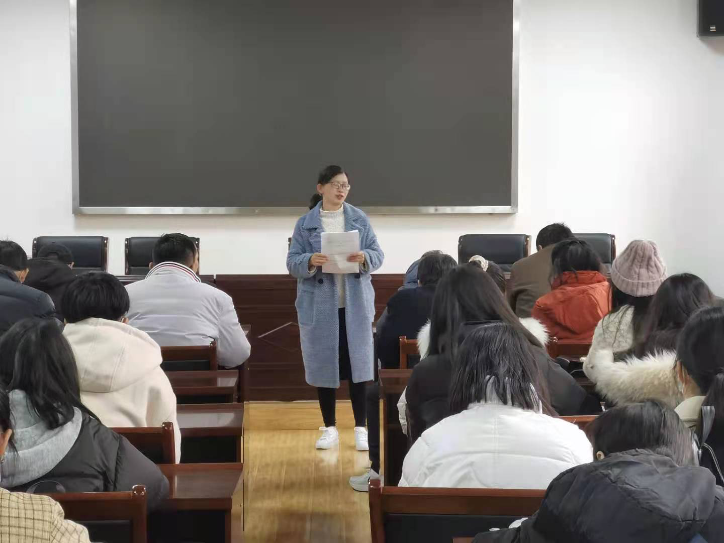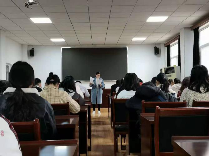 思想政治教育专业2018级思想政治教育专业实习动员大会,在教二楼410教室如期举行。全体在校集中实习学生和指导教师们参加会议,政教系副主任胡银银老师主持动员大会。