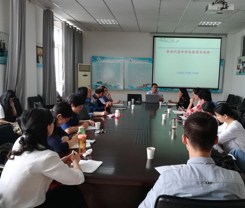 讲座伊始,王永贵教授从意识形态与意识形态领导权、准确把握十八大以来意识形态领域的新变化和着力推动新时代意识形态创新三个方面进行了详细深入的讲解。他首先解释了意识形态丰富的概念,明晰了意识形态领导权与意识形态工作领导权的联系与区别,并提出,意识形态领导权的实现离不开意识形态现实的生态环境、意识形态的宣传活动和利益关怀三个条件。王教授表示,意识形态决定文化前进方向和发展道路,对一个政党、一个国家、一个民族的生存和发展至关重要。他结合习近平总书记在十八大以来关于意识形态工作的讲话以及党的十九大报告,全面的分析了新时代意识形态工作的新气象和新时代意识形态工作在思想内涵、功能定位、话语变迁、关注对象、传播机制、管理方式和对外传播七个方面的“转型”之变 。对于如何推动新时代意识形态创新,他提出四点建议:一是要深刻领会意识形态工作的新要求;二是要积极抢占意识形态话语权的制高点;三是不断提升思想理论的批判力解释力供给力;四是有效推动理论与舆论的同向发力同频共振。