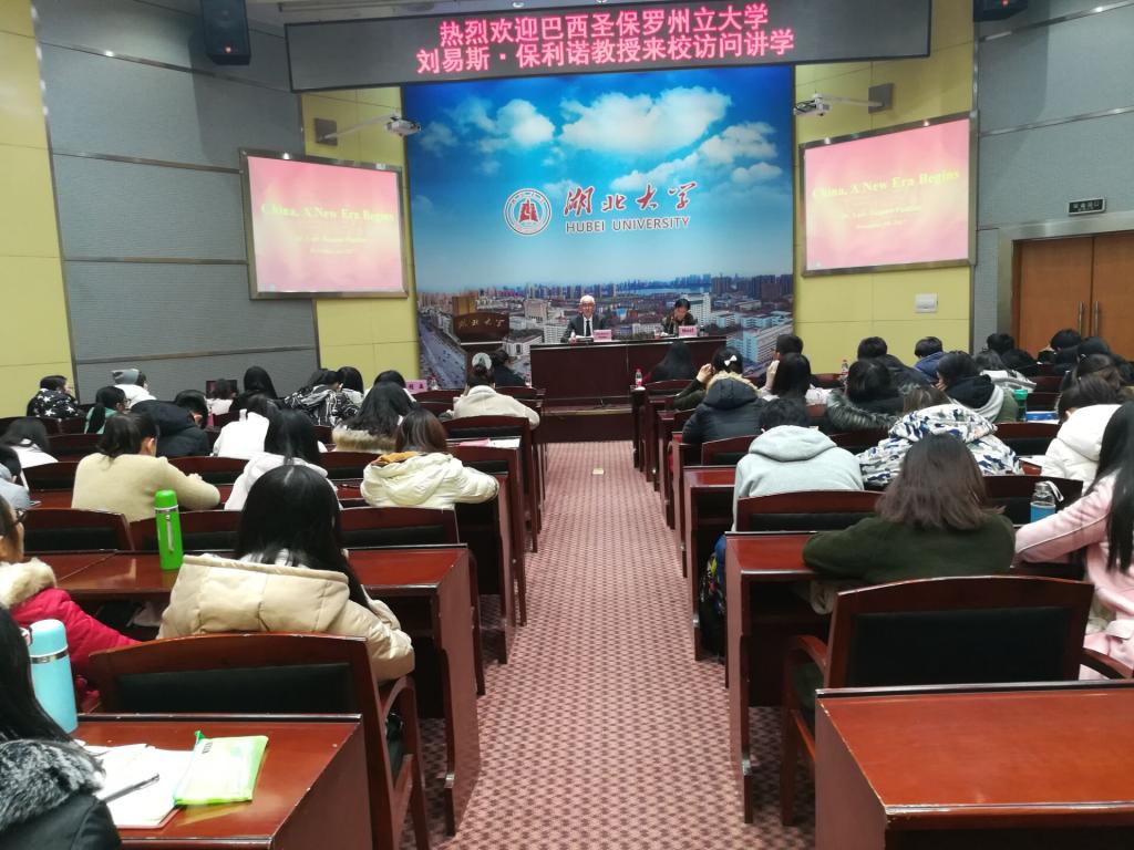 部分研究生和本科生参加了此次活动。本次学术报告由湖北大学马克思主义院长徐方平主持,副院长周芳教授参加了此次活动。徐方平院长就Luis Antonio Paulino教授的到来表示欢迎。