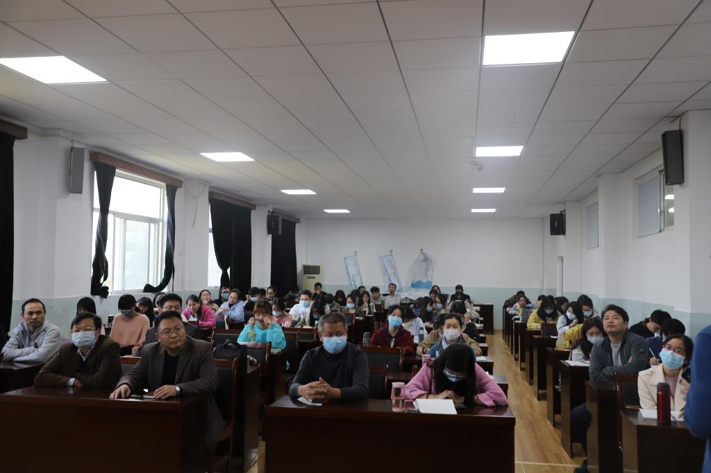 第一位上台的是翟艳芳老师。翟老师首先总结了小组成员及其实习概况。随后,翟老师介绍了本组同学们的实习经历,包括有的同学同时教授两个年级的课程,在巨大的压力中迅速成长;有的同学以一名正式教师的标准要求自己,记住了班内每位同学的名字,此乃教师的基本功;有的同学治住了班内挑皮捣蛋的学生,让学校教师大感惊讶等等。