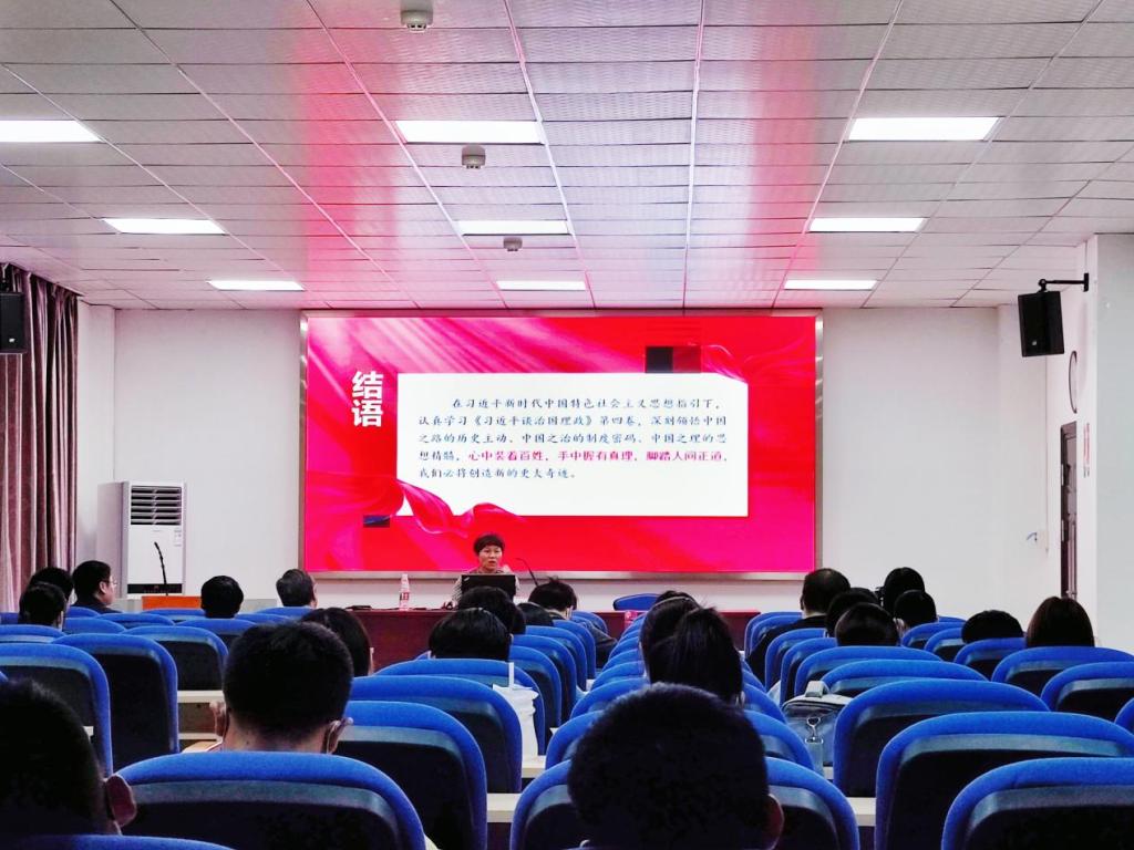 于桂凤教授表示,在习近平新时代中国特色社会主义思想指引下,在座师生要认真学习《习近平谈治国理政》第四卷,深刻领悟中国之路的历史主动、中国之治的制度密码、中国之理的思想精髓,不畏险阻、攻坚克难、团结奋斗。