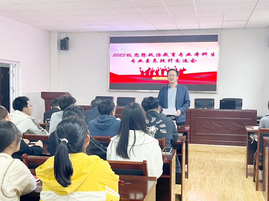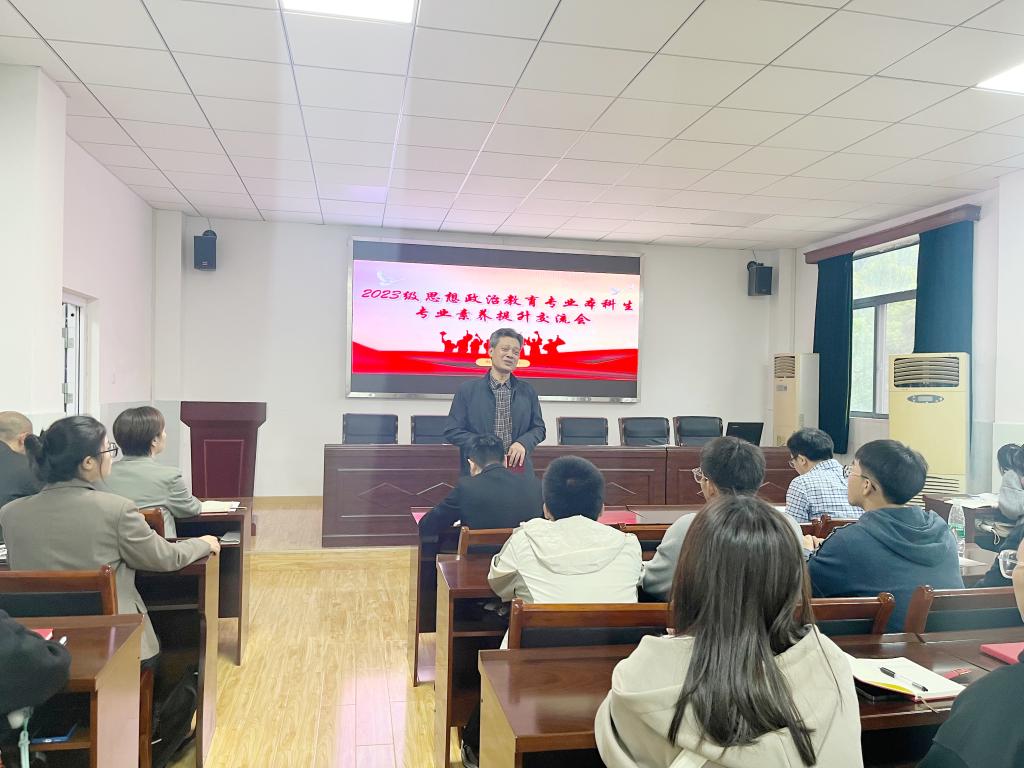 辅导员潘洒及2023级思想政治教育专业全体学生参与此次活动。会议由院党委副书记晏妮主持。