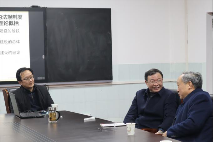 报告会后,校党委书记谢红星教授看望了李斌雄教授并就党内法规制度建设作了相互交流。