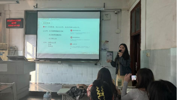 5月11日下午,王潇同学围绕武汉示范性学校专项招聘相关事宜,从自身备考历程、初试面试流程、及上岸后的准备等几方面为同学们作出详细分享。王潇向大家分享了诸多有关武汉市教师招聘的有关信息与资料,并提醒同学们一定要善于寻找就业信息,妥善安排学业与工作。