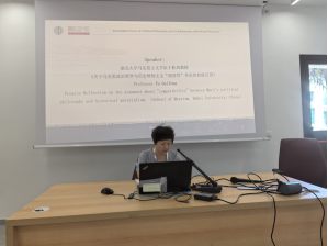 于桂凤教授作了《关于马克思政治哲学与历史唯物主义的“相融性”之争的前提性反思》的报告,她在报告中探讨了把握马克思的政治哲学与历史唯物主义是否具有相融性的前提,认为有必要实现两个“回归”。一是“文本回归”,二是“问题回归”。哲学批判、政治经济学批判和人类学三种研究范式共同形塑了马克思哲学别样的探讨政治问题的立场、观点和方法。