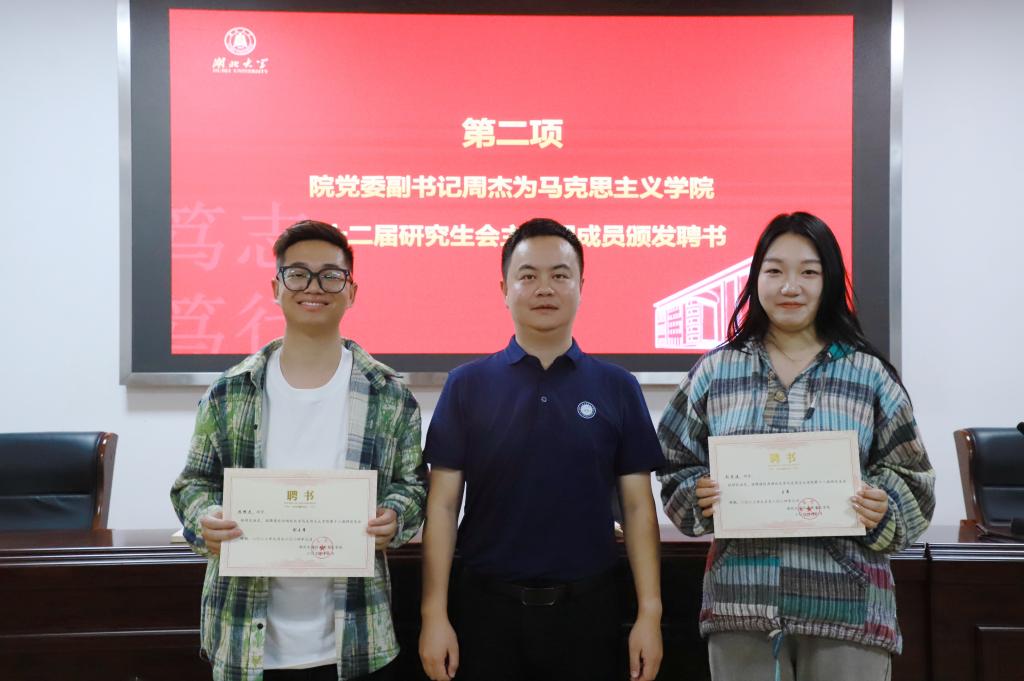 (图为院党委副书记周杰为第十二届研究生会主席团成员颁发聘书)