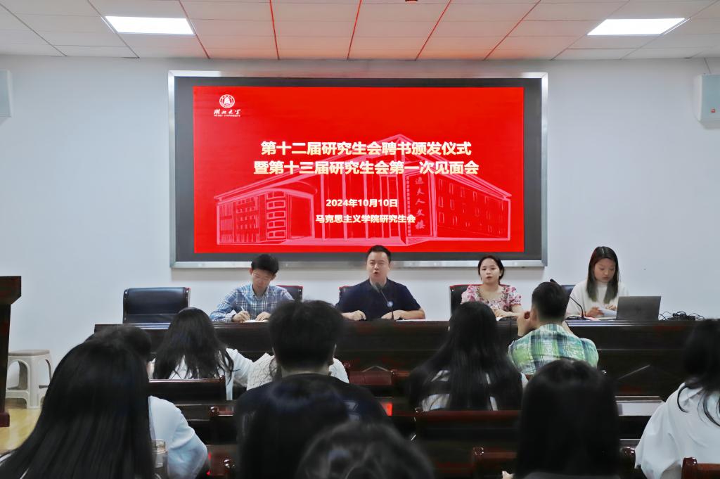 410报告厅举行。院党委副书记周杰、辅导员冷自衍、兼职辅导员周珍、第十二届研究生会主席团和第十三届研究生会全体成员出席会议。会议由第十三届研究生会主席杨昕怡主持。