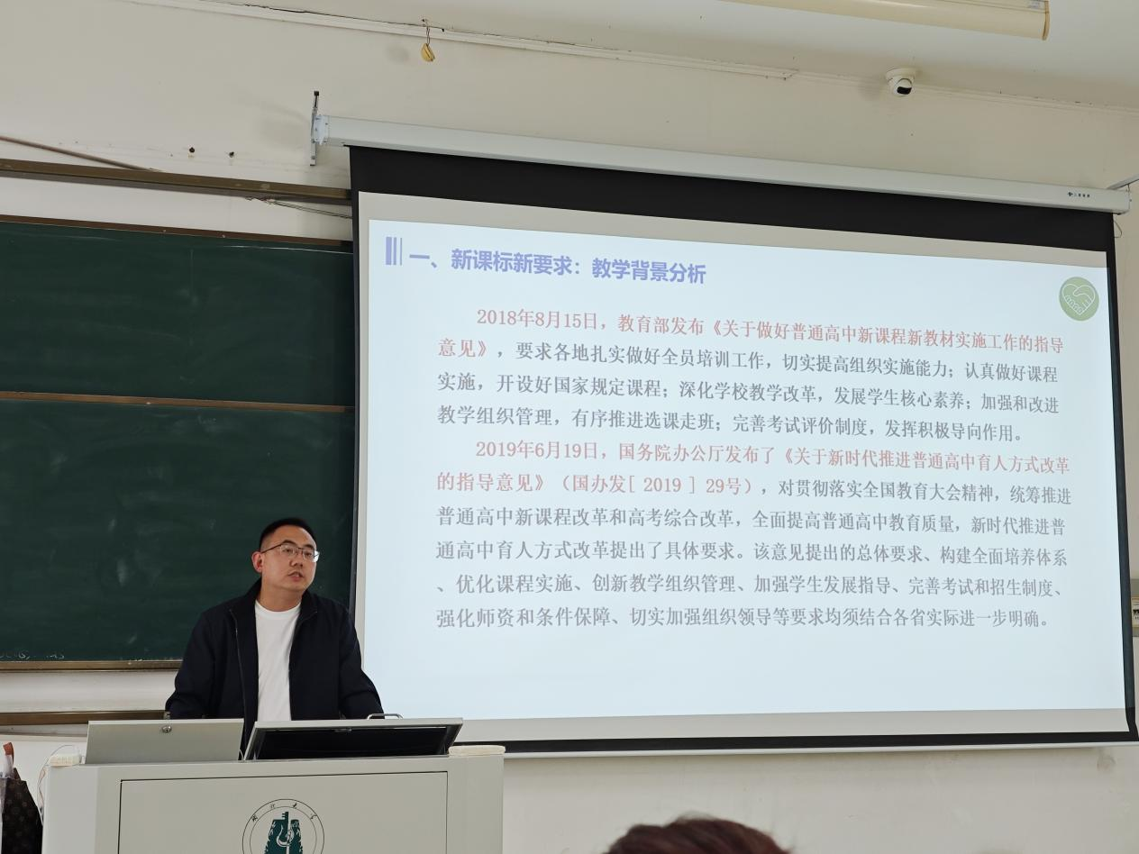随后,陈杰老师向学生们展示了今年部分省份的新课标高考真题,“命题注重用党的创新理论成果武装头脑,将习近平新时代中国特色社会主义思想有机融入试题。”陈杰老师提到,当前的高考命题注重从文化素养、法治观念等多方面考察学生的能力,通过加强试题的开放性设计、关注演绎推理过程和强调思维整体性动态性等特征等方式引导培养学生的创新思维、逻辑思维和辩证思维。
