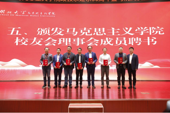 (图为侯勇为马院校友会首届理事会成员颁发聘书)