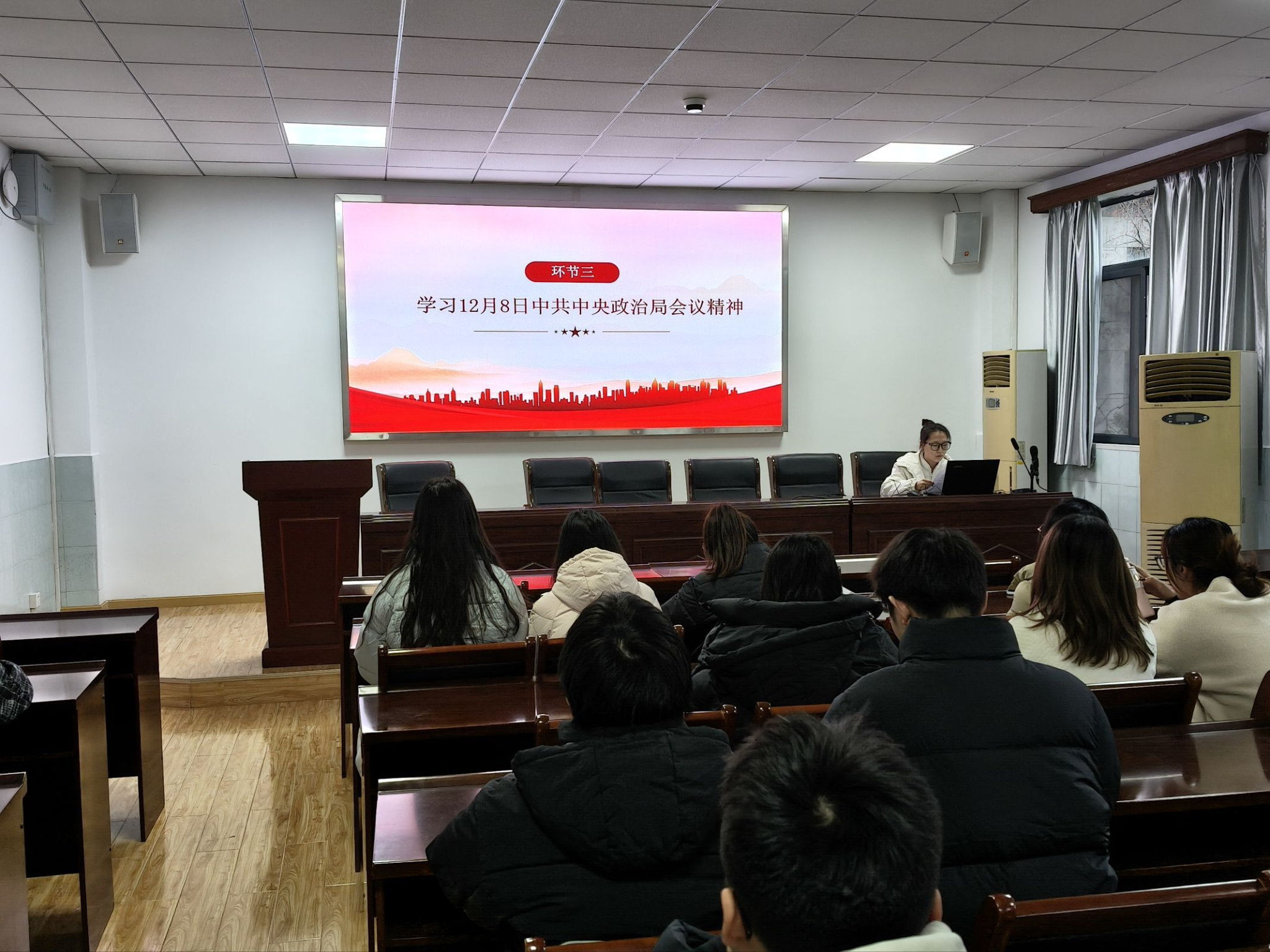 会议室开展主题党日。青年委员胡迟主持,带领党员学习湖北省第十二届十一次全会公报及中央政治局集体学习会议精神,强调要筑牢思想根基、传播正能量。党员结合专业踊跃发言,展现理论素养提升的积极面貌。